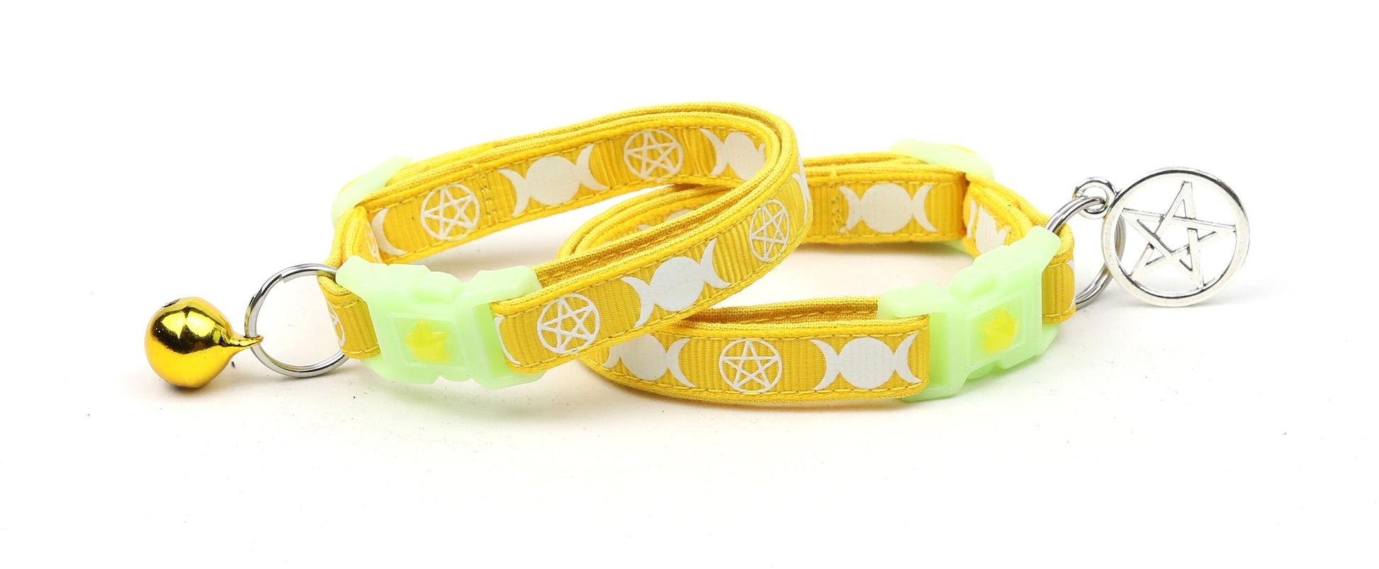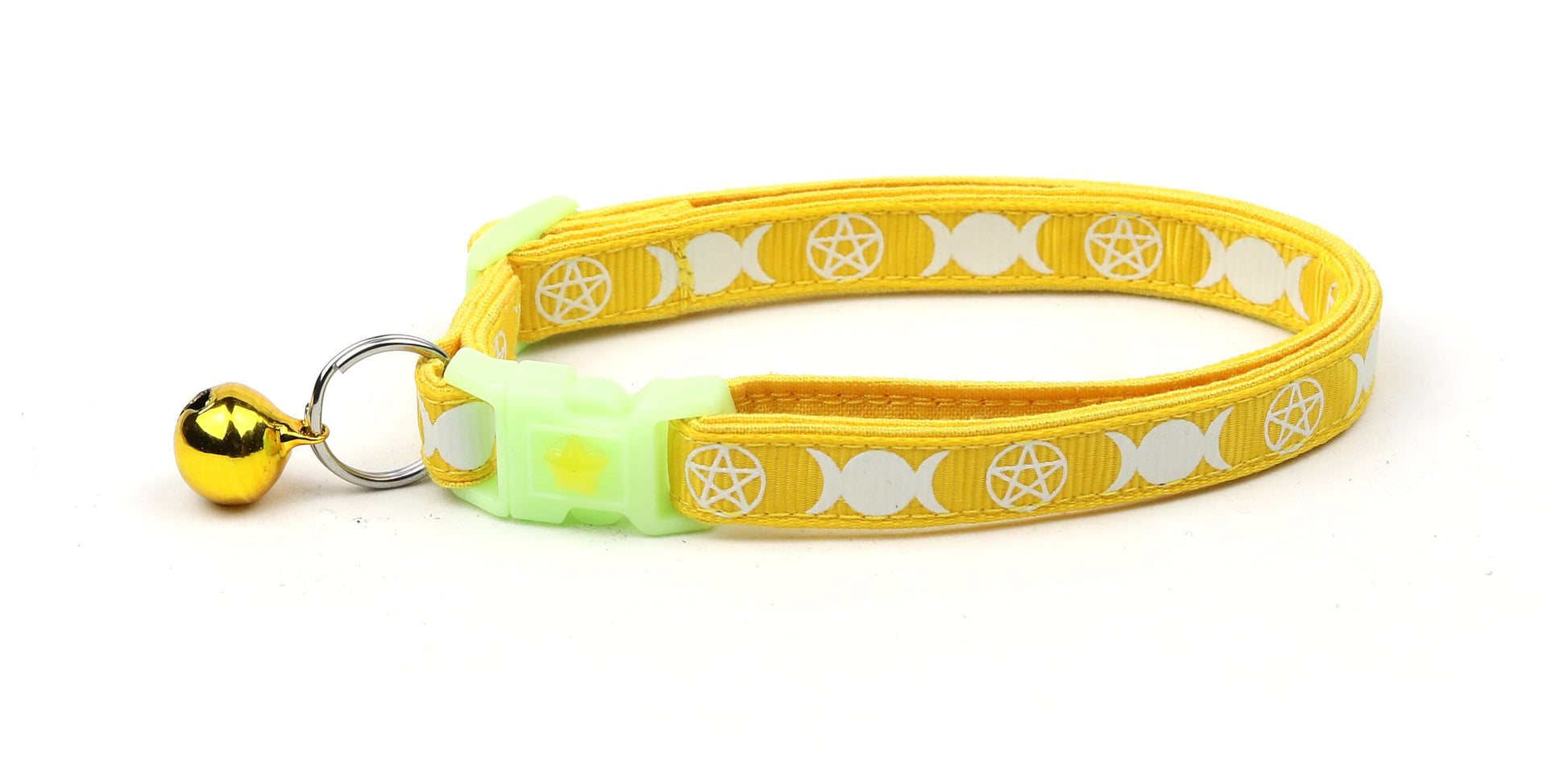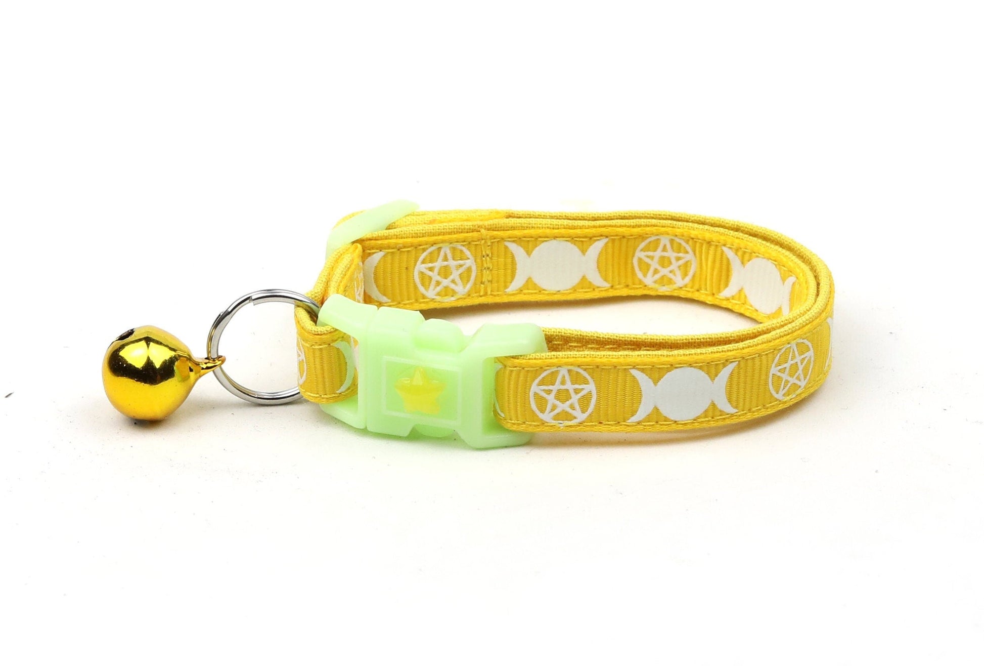 Reinforced cotton makes a great collar material because it is soft, light, as well as sturdy. It is also machine washable which all pet owners know is a "must have!". We use breakaway clips on our cat collars for your kitty's safety. If you insist on a non-breakaway collar I can make one custom for you if you contact me. The bell can easily be removed if you prefer.